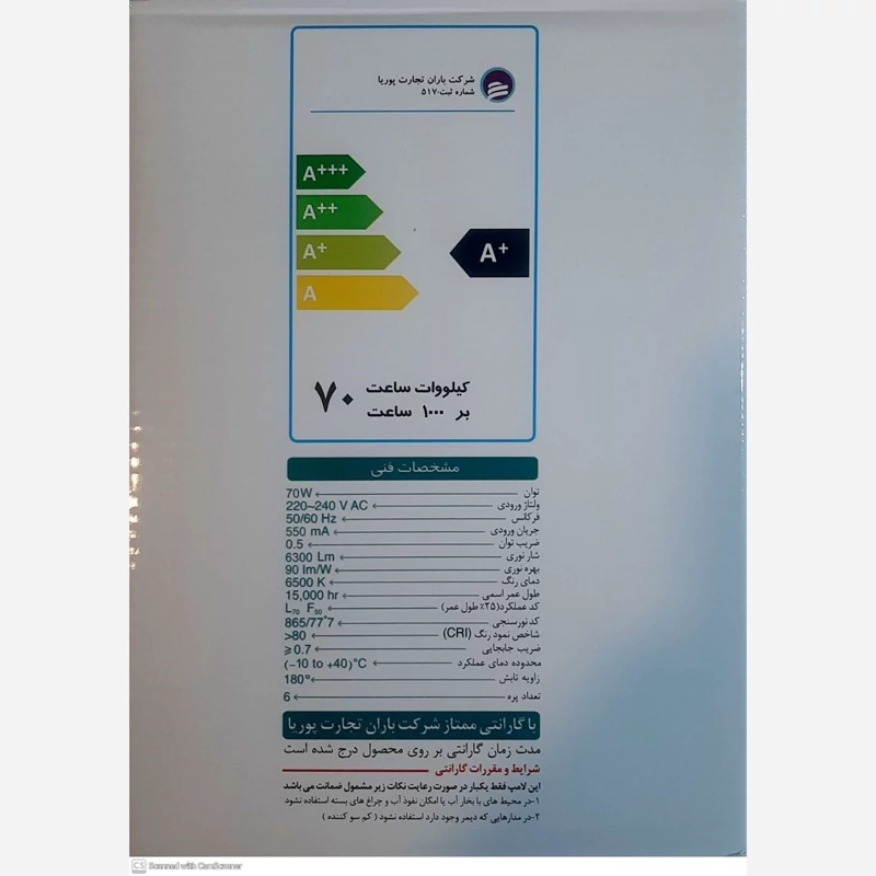 لامپ 70 وات لوتوس 6 پر مهتابی ایران زمین با طراحی منحصربهفرد 6 پرهای و نوردهی فوقالعاده قدرتمند، انتخابی مطمئن برای محیطهای خانگی، اداری و تجاری است.
