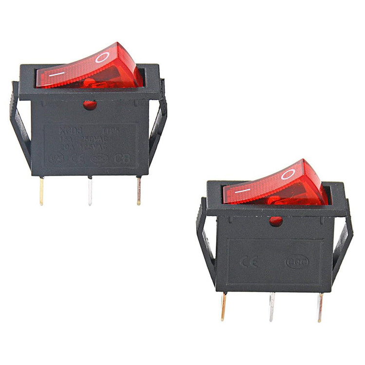 قابلیت ها: کلید راکر باریک 3 پایه چراغ دار قرمز بسته 2 عددی