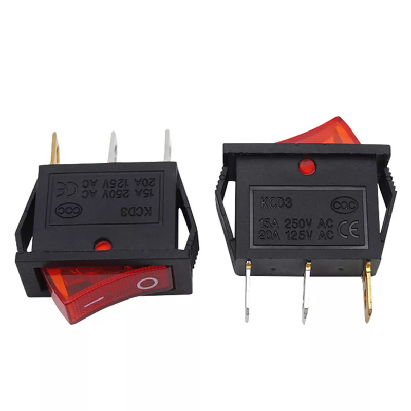 کلید راکر باریک 3 پایه چراغ دار قرمز بسته 2 عددی